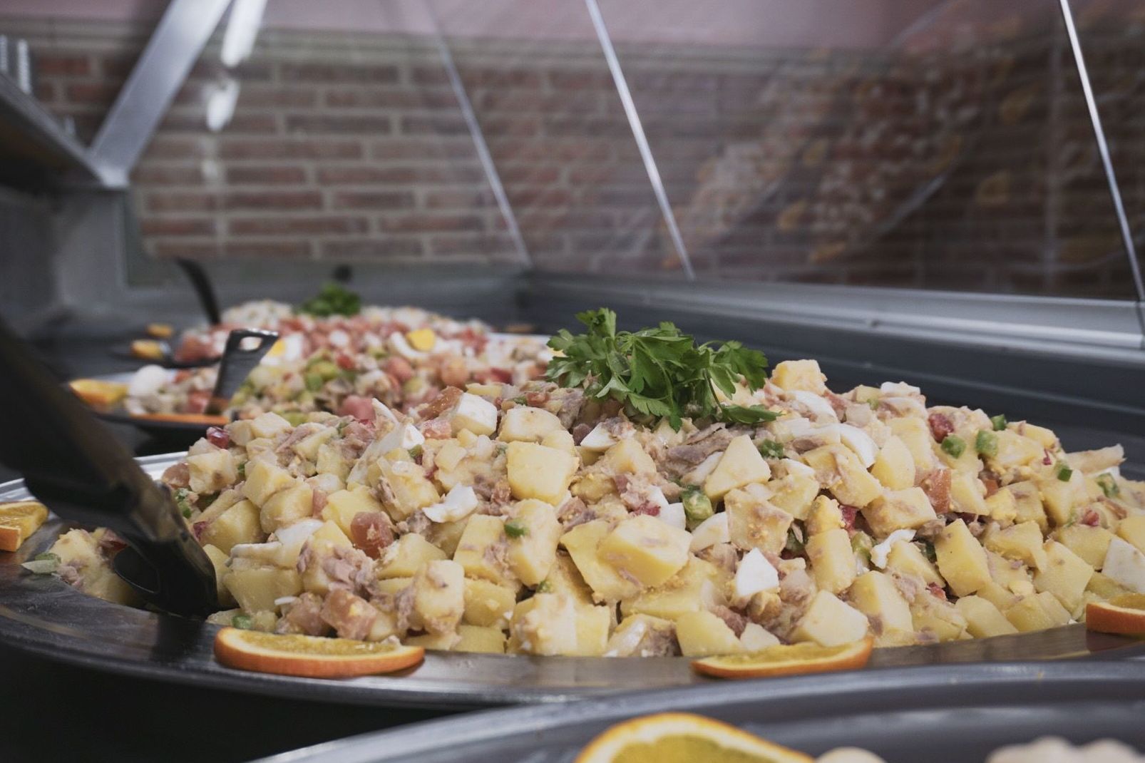 En nuestras ensaladas encontraras tal variedad como: Ensalada de arroz con guisantes, mixta, de col con pollo, ensalada de pasta, ensaladilla rusa, etc.